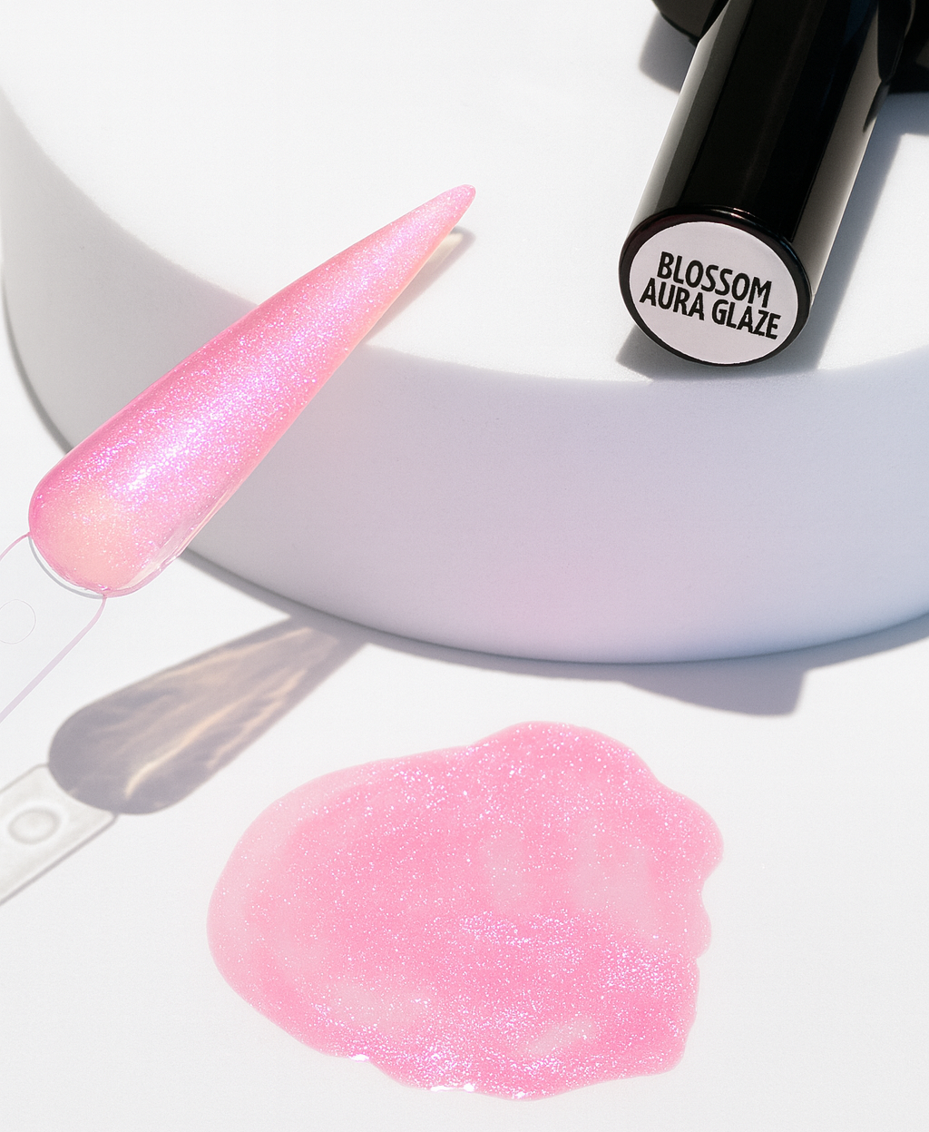 A delicate, light-catching pink that glows like fresh petals in sunlight. Blossom Aura Glaze is soft, luminous, and effortlessly dreamy. This sheer, iridescent glaze shifts between blush pink and lilac tones, giving your nails a radiant, glazed finish that feels feminine and modern all at once.
