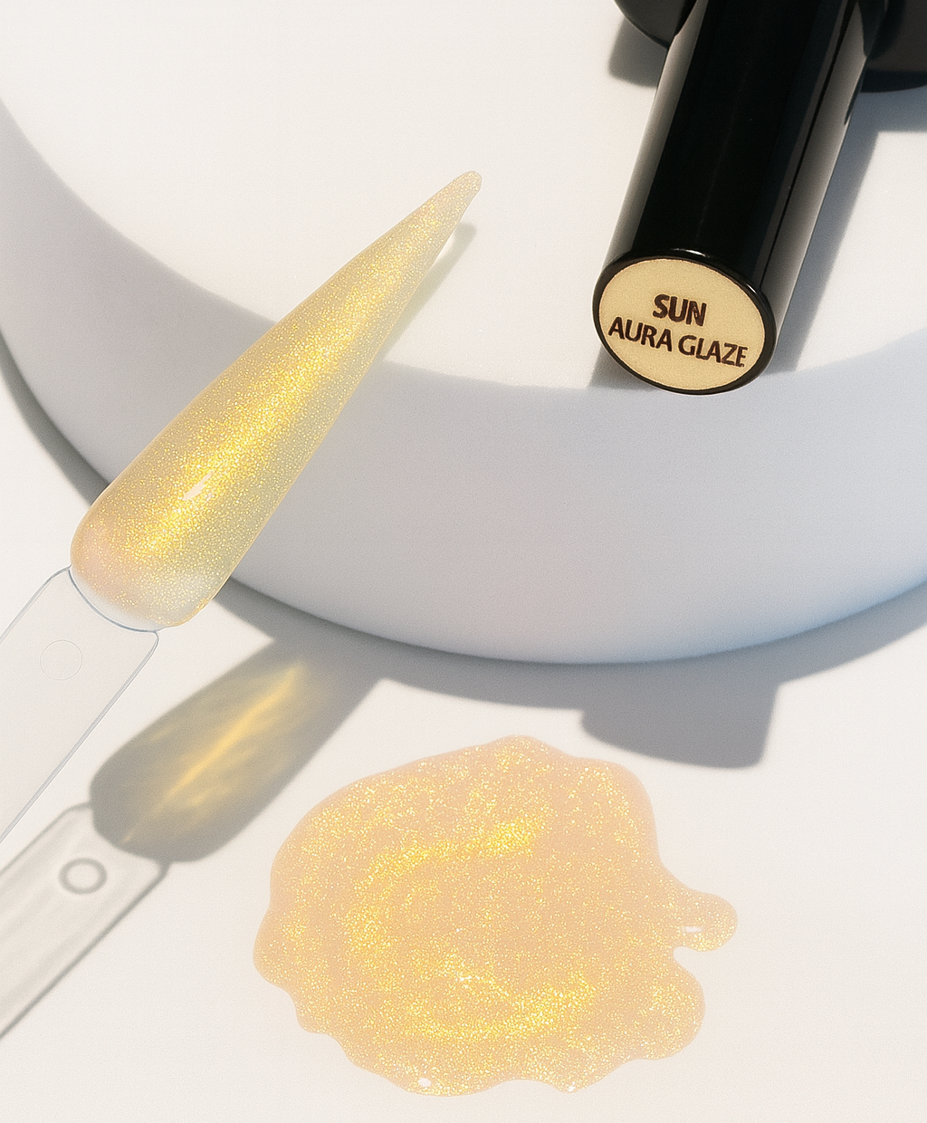 A warm, golden shimmer that captures the glow of sunlight on skin, Sun Aura Glaze radiates pure, luminous energy. This sheer glaze melts across the nail with a subtle golden iridescence, leaving a glossy, light-reflecting finish that feels effortlessly luxurious. Wear it alone for a soft halo effect or layer it over your favourite nude or pastel for a sun-kissed transformation.